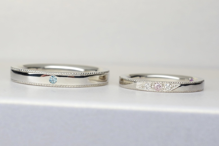 彫留3pcs(A加工)/ミルグレイン(B加工)/カラーコーティング(C加工)/ダイヤモンド(C加工) ※参考:右リング
