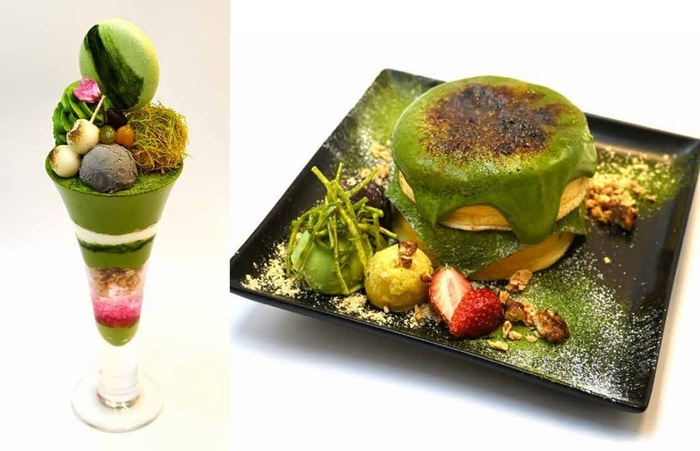 さらに、季節限定「桜香るお抹茶づくしパフェ」は、濃厚生クリームや、ひんやりアイスクリーム、もちっと食感の葛餅など様々な角度からお抹茶を堪能できます。華やかなピンクの桜ソースやゼリーがアクセント。お食事後のデザートにピッタリの抹茶アイスラテや抹茶ミニパフェもご用意しております。