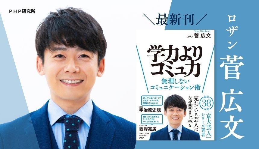 株式会社PHP 研究所(京都市南区・代表取締役社長 瀬津要)は、『学力よりコミュ力――無理しないコミュニケーション術』菅広文 著/税込1,760 円)を2025年12月9日に発売します。菅広文氏はコンビ芸人ロザンのボケ担当で、2026年8月には結成30年を迎えます。著書の「京大芸人」シリーズは累計38万部を超えるなど、幅広く活躍中です。なぜ売れている芸人は聞き上手なのか? 菅氏と親交が深いキングコング西野亮廣氏などとのエピソードも交えながら、芸人だからこそわかるコミュニケーションの秘密を初公開します。