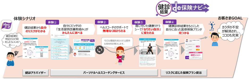 「健診結果de保険ナビ(自分の健康診断結果に合わせた医療保険プランを提案する機能)」についても