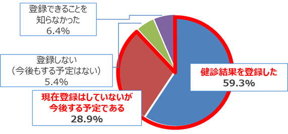 「健康診断結果を登録した」もしくは「登録する予定」のユーザーさまが約8割を占め、健康診断結果を登録するとさらにアプリ利用の満足度が上がることがわかりました。