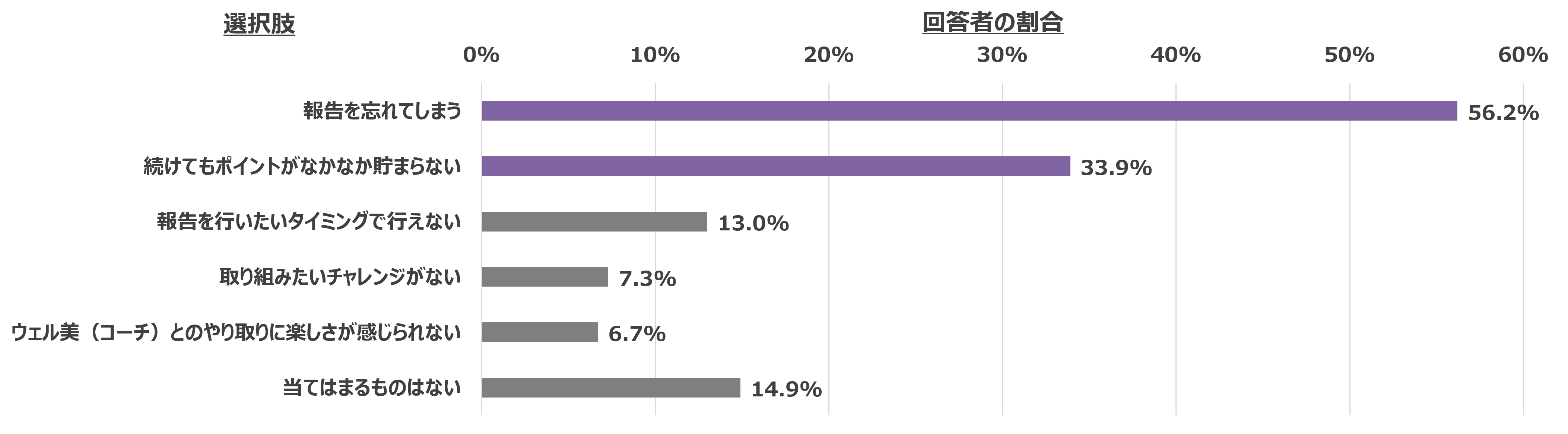 Q7.チャレンジを続ける上でお困りの点・不便な点のうち、以下当てはまるものを教えてください(複数回答可)