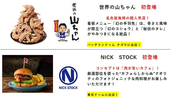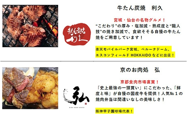 本イベントでは、阪神甲子園球場ではおなじみの「牛たん炭焼 利久」や「京のお肉処 弘」に加えて、今回初出店となる「世界の山ちゃん」や「NICK STOCK」など、各地の球場で人気のスタジアム“肉”グルメが集結します!!