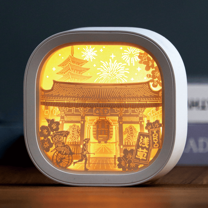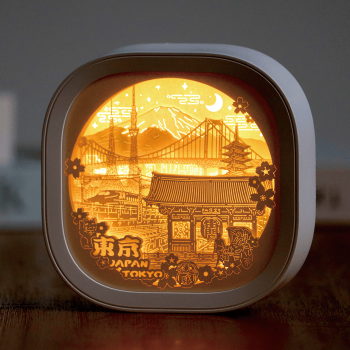 『Nippon Collections(ニッポンこれくしょん)』は、4~10枚の特殊高級紙に精緻なレーザーカットを施し、立体的で奥行きのある風景を再現。柔らかなLEDの光が層の間から灯り、まるでジオラマのように旅の情景を浮かび上がらせるペーパーライトです。