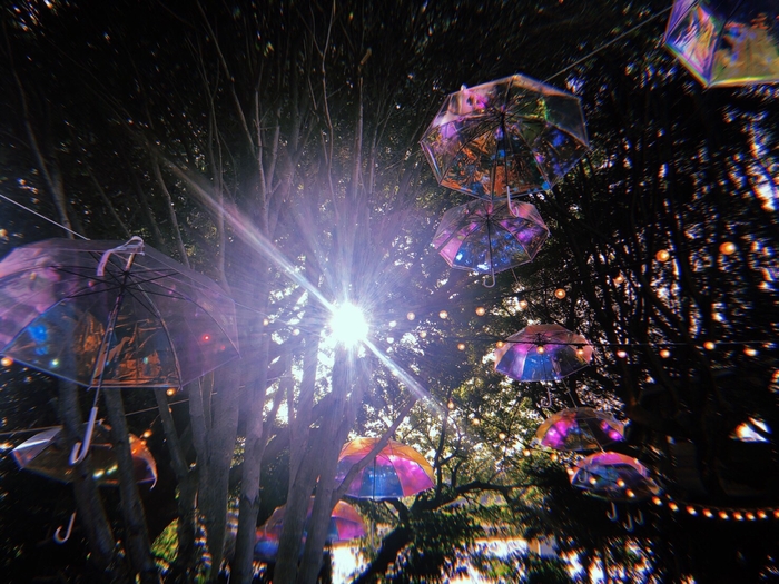 今年6月に発売されるとSNSを中心に話題沸騰、即完売となったWpc.™のオーロラビニール傘。そのオーロラでラッピングされた椿森コムナは、まさに非日常空間。日の当たり方によってキラキラと表情が変わるオーロラの傘は、地面にカラフルな色を映し出してくれます。雨の日の水溜りに反映するコムナの天井もがフォトジェニックで撮影スポットに大変身。