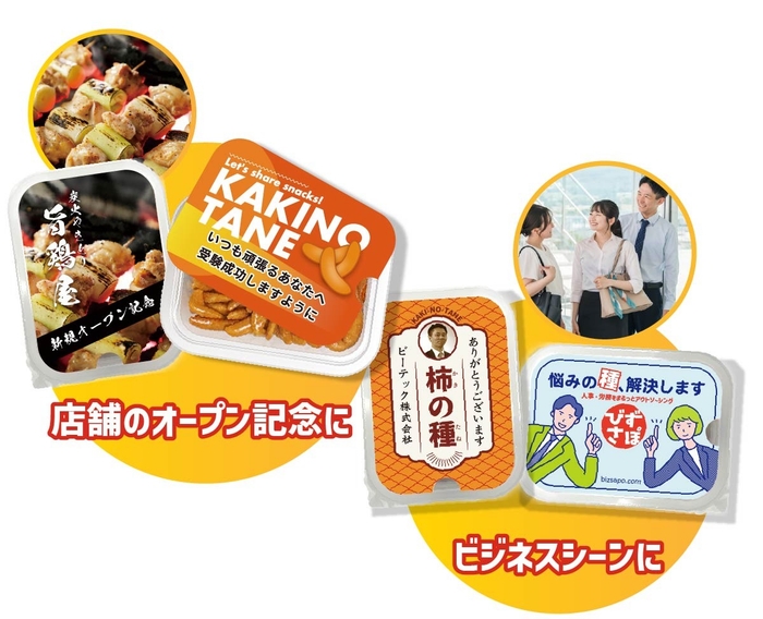 ビーテック株式会社は、オリジナルフードノベルティ専門店「ノベルティのお菓子屋さん」にて、『オリジナルパッケージで作る 柿の種 おやつカップ』の販売を開始しました。