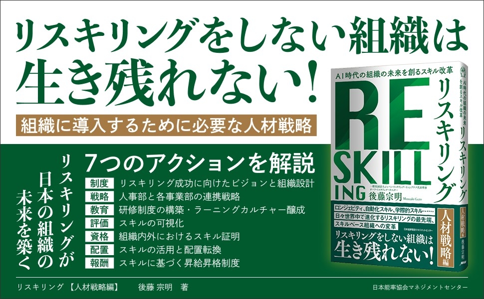 日本におけるリスキリングの第一人者、後藤宗明氏の新刊『リスキリング・人材戦略編』が2025年9月16日に日本能率協会マネジメントセンターより刊行されます。