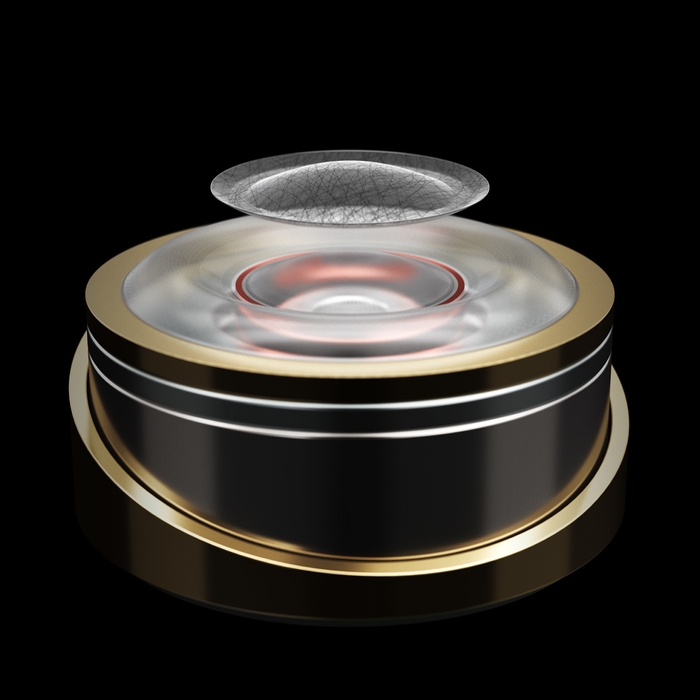 「HP-V500BT」「HP-V700BT」に搭載するダイナミックドライバーに「カーボンファイバードーム振動板」を採用しました。高剛性で軽量かつ寸法安定性に優れた厚さわずか75μmのカーボンファイバーペーパーをPU振動板のドーム部に貼付することで、伝搬速度と内部損失の理想的なバランスを実現。カーボンファイバードームとPUエッジのしなやかなストローク性能により、付帯音のない豊かな低音と繊細な中高音を両立しました。さらに通常の銅線に比べて軽量なCCAW(銅クラッドアルミ線)ボイスコイルとN45の高磁力マグネットを搭載することで、トランジェント特性に優れたパワフルでキレのある重低音を再生します。