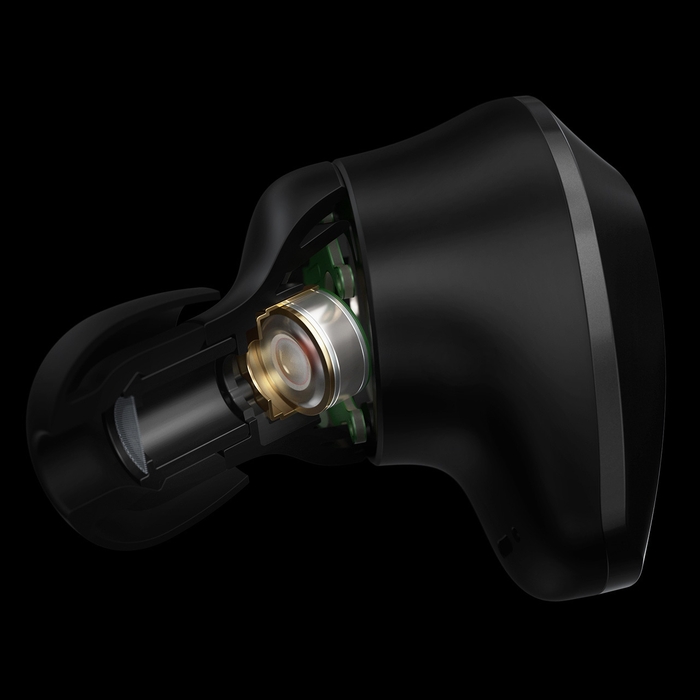 「HP-V700BT」はカーボンファイバードーム振動板ドライバーに加え中高音域の再現性を高めるために高解像度、低歪率かつ低電力の超小型BAドライバーを搭載。ハイブリッド性能を充分に発揮するため、周波数特性のクロスオーバーを緻密に調整し、TWSとして他に類を見ない圧倒的な音場感と躍動的なダイナミックレンジを実現しました。
