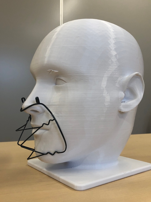 金属3Dプリンターならではのデザインで「Kuchimoto」-口元-の快適性を保ち細いフレームでしっかりマスクを固定できるのは、金属3Dプリンターの造形品の魅力のひとつです。