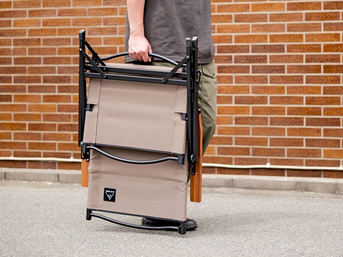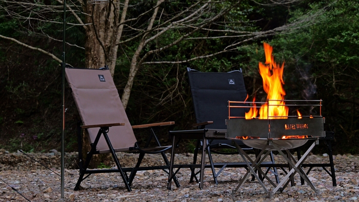 座部および背部には難燃加工を施した「コットンキャンバス風合い生地」を採用しています。風合いを残しつつも重量感の軽減を実現。また、火の粉が飛んできても生地が燃え広がる心配はありません。星空を眺めながら、焚火も楽しむ欲張りなリラックスタイムを実現できます。