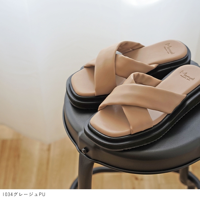 商品名 : menue (メヌエ) スクエアトゥ 厚底 コバサンダル