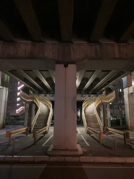 シャッターが閉まった週末の商店街という、暗くなりがちなスポットですが、被写体の楽しそうな表情を含めとても明るい雰囲気で収められています。