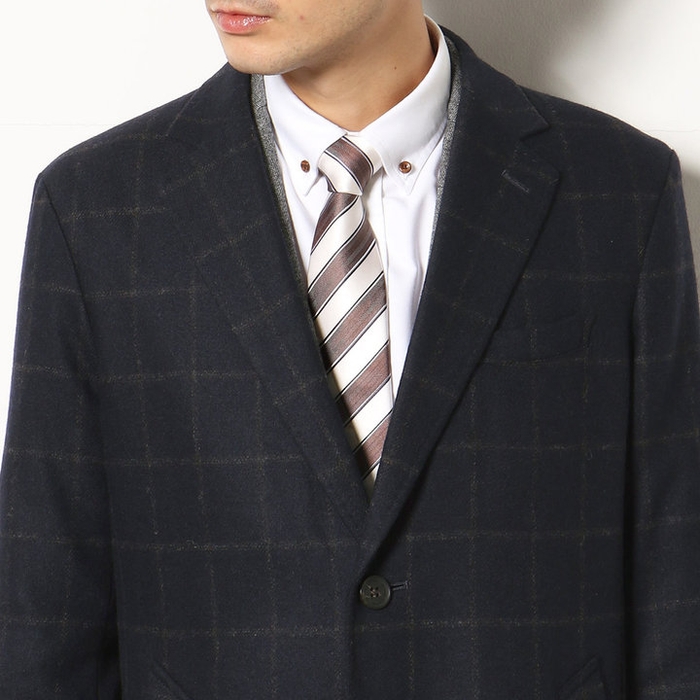 厳しいチェックを通してできあがった生地は、ふっくらとした風合いです。また日本の水質がきれいなことで、加工を経た生地自体が美しいことも特長です。クラシックなウィンドーペーン柄と相まって、リサイクル素材には見えない上品な表情です。