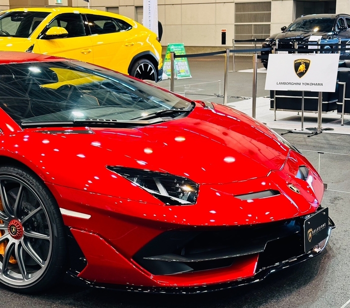 会場には最高時速300kmを超えるSSUVであるURUSやブランドの象徴であるAventadorなどを展示いたしました。イタリア生粋のスーパーカーLamborghiniに搭載される特別なエンジンや軽量で強靭なカーボン素材をふんだんに使った最新空力パーツの造形、近未来的かつ機能的なインテリア、そして何よりもランボルギーニらしいアグレッシブなフォルムが異彩を放っていました。