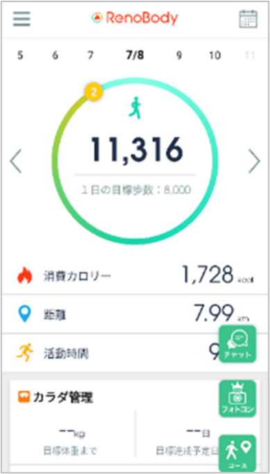 ・健康経営サポートサービスの歩数計アプリ 「RenoBody」