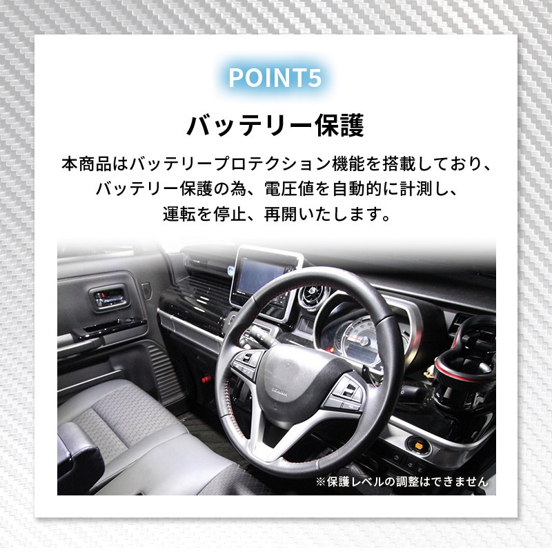 ・DC電源:12V/24V→車のシガーソケット→アウトドア、車中泊で