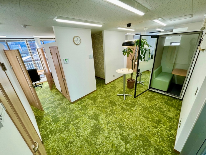 今回、キャンペーンの対象となるのは、3階にあるシェアオフィスエリアの「個室」です。登記にも使用できる、鍵のかかる個室で、サテライトオフィスや起業の拠点としてぴったり。広さは1人用(19,250円/月)と2人用(30,250円/月)があります。