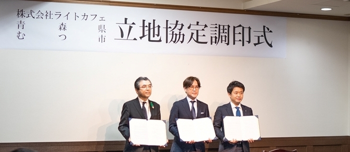 株式会社ライトカフェ(本社:東京都渋谷区、代表取締役社長:榊原 喜成、以下 当社)は、2022年4月25日に、青森県及びむつ市と事業所開設に関する基本協定を締結いたしました。協定締結に伴い調印式が執り行われましたのでお知らせいたします。