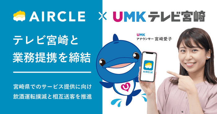 株式会社Alpaca.Lab(所在地:沖縄県中城村、代表取締役:棚原生磨、以下当社)が展開する運転代行配車プラットフォーム「AIRCLE(エアクル)」は、株式会社テレビ宮崎(所在地:宮崎県宮崎市、代表取締役社長:寺村明之、以下テレビ宮崎)との業務提携を発表いたします。この提携により、県内における飲酒運転の撲滅にも繋げていけるよう取り組んでまいります。