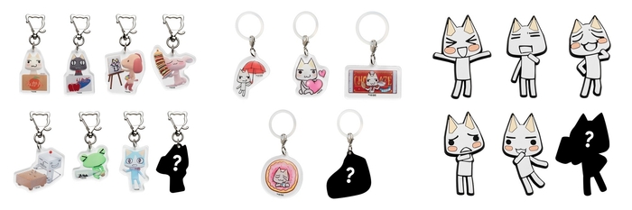 トレーディング商品のアクリルキーホルダー、めじるしマーカー、マグネットには、それぞれシークレットが1種類ずつ隠れています。