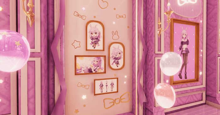 背景や額縁の飾りもにぎやかで、ハートやリボン、うさ耳などがちょこんと添えられた壁面が可愛い!