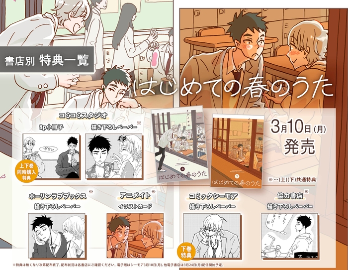 ※コミコミスタジオの8p小冊子、コミックシーモアの描き下ろしペーパー以外は(上)(下)共通特典となります