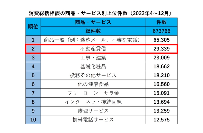 令和6年版消費者白書(消費者庁)によると、2023年4月から12月における不動産貸借に関する相談件数は約30,000件で、日本国内における不動産トラブルが後を絶たない状況です。家賃滞納や入居者同士の争いなど、賃貸経営において様々なトラブルが多く存在しますが、弁護士保険『事業者のミカタ』を活用すれば弁護士費用の補償や気軽に弁護士に相談できることから、小さな問題から法的訴訟に発展する大きなトラブルまで、家主は安心して対応することが可能になります。