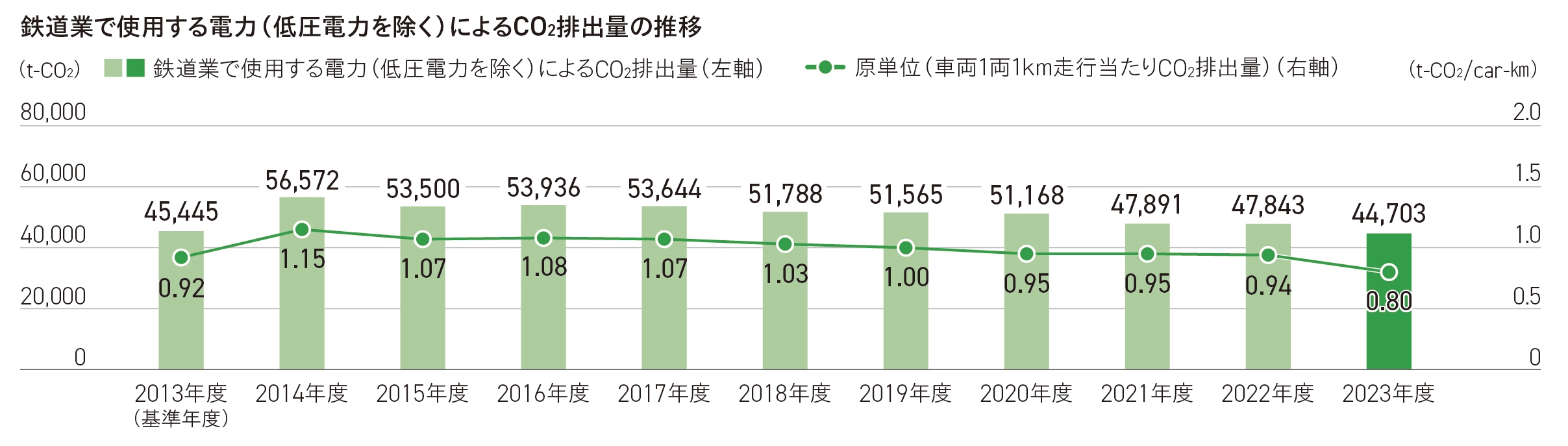 ◯当社既存車両と比較して、1両当たりの走行にかかる電力使用量を最大39%抑制し、およそ年間33.3トンのCO2排出を削減