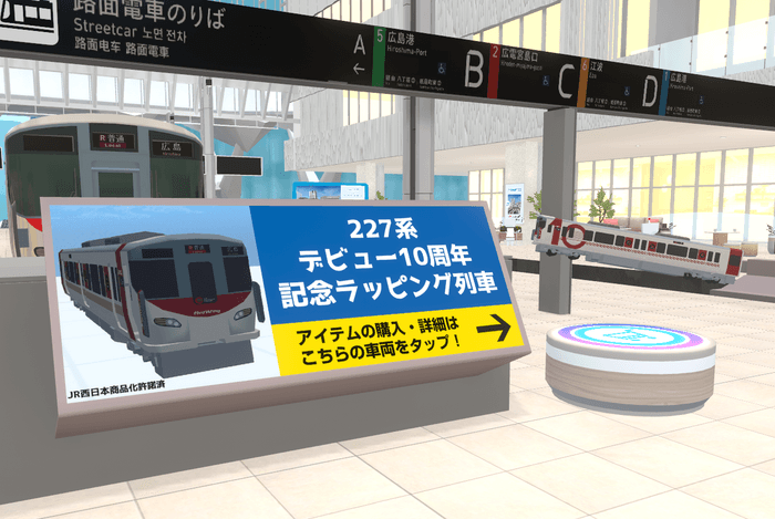 今回の企画は、クラフトアイテム「227系Red Wing10周年ラッピング車両」または「広島電鉄650形車両」を購入し、ワールドに配置するのが応募条件になります。(「中央アトリウム フロア【バーチャル広島駅】」ワールドからも購入できます)