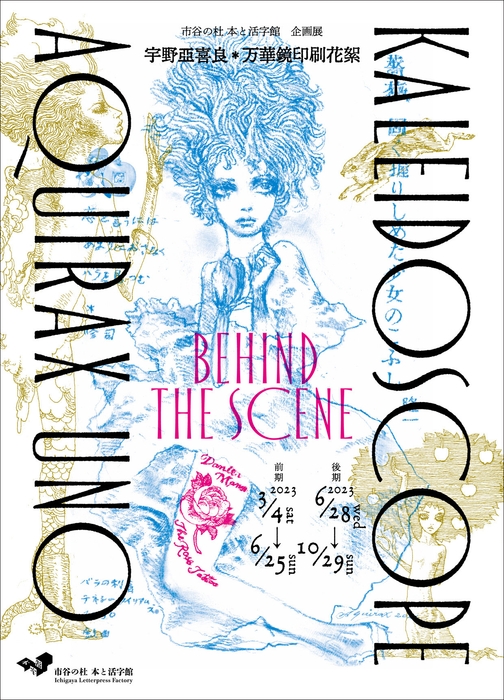 大日本印刷株式会社(DNP)の文化施設「市谷の杜 本と活字館」(東京都新宿区)で、企画展「宇野亞喜良 万華鏡印刷花絮 Aquirax Uno Kaleidoscope -Behind the Scene-」を開催中です(2023年10月29日まで)。