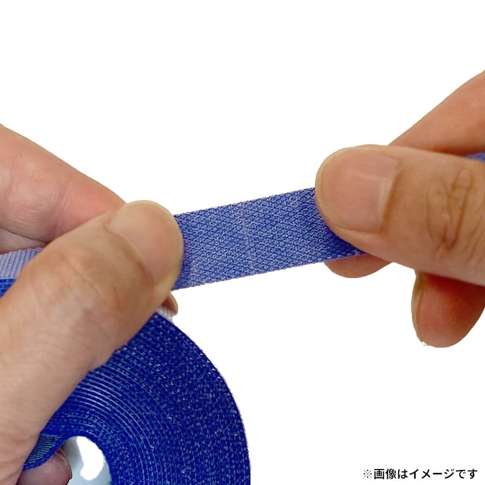 パソコン工房セレクト商品『結束テープ』は20mm毎にミシン目が入っており、使いたい長さに合わせて、ハサミを使わずに手で切れます。