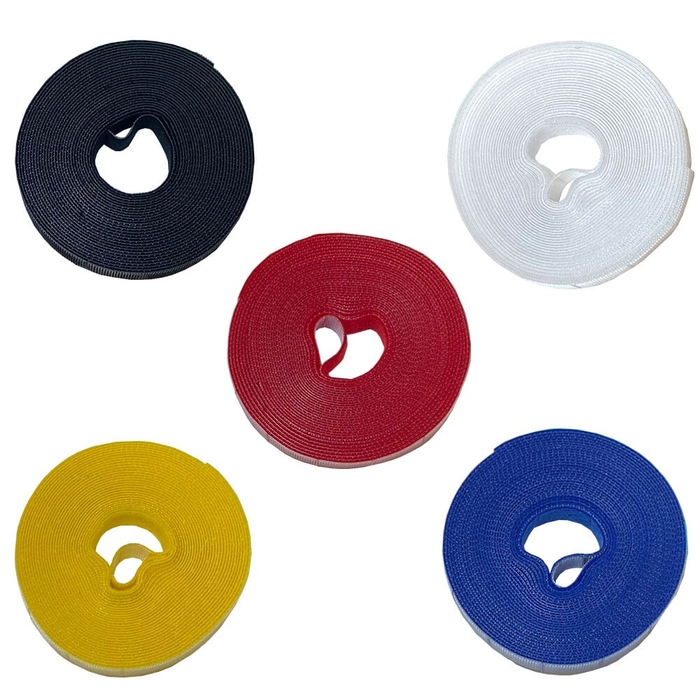 ケーブル類などをまとめる際に便利な商品です。お好みに合わせて黒、白、赤、青、黄の5色からお選びいただけます。