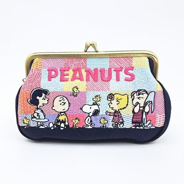 かわいいのにシンプルデザインで男女ともに好印象間違いなしの定番キャラクター「スヌーピー」。今回はそんなスヌーピーから愛らしキャラクターたちが、細かい畳刺繡でデザインされたガマ口ポーチです。