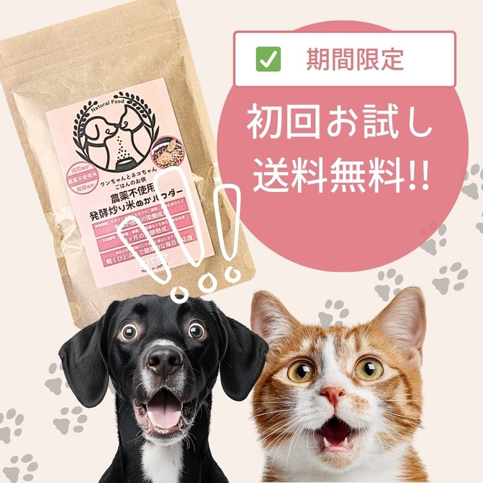 ワンちゃんネコちゃんの健康をサポート —「農薬不使用発酵炒り米ぬかパウダー」新発売