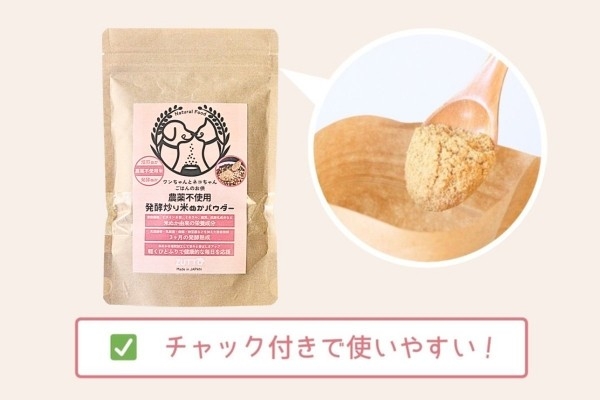 - 商品名:農薬不使用発酵炒り米ぬかパウダー(犬猫用ふりかけ)