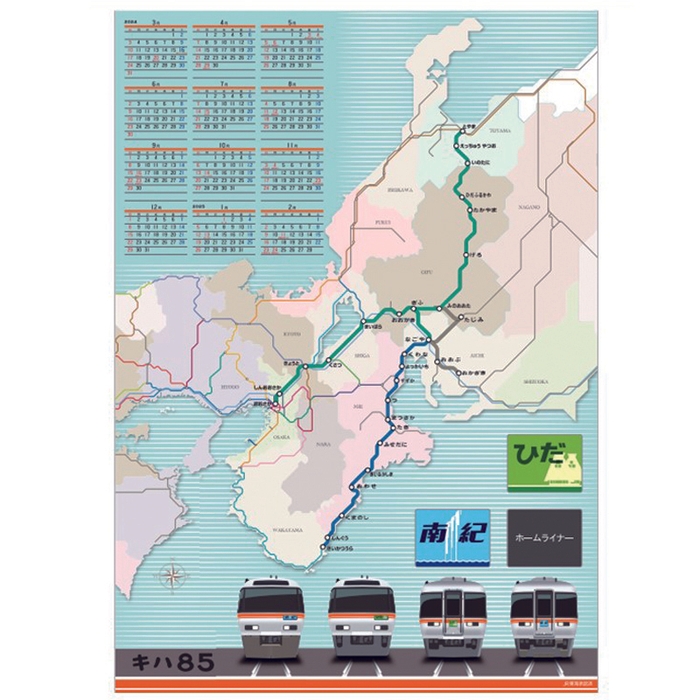 カレンダーは、今から35年前の1989年2月18日に高山本線の新型特急気動車としてデビューし、2023年6月末をもってHC85系にバトンを渡し、惜しまれつつ引退したキハ85系をモチーフにした「キハ85系カレンダー2024」と、JR東海の在来線駅に設置されている時刻表と路線図を模したデザインの「JR東海時刻表スタイルカレンダー2024路線図付」の2種類をご用意しました。