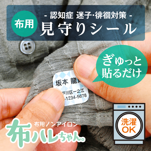 認知症による迷子・徘徊対策に!“布ハレちゃん”で身元確認が簡単な『見守り型の名前シール』登場。2年かけて開発した衣類に指で貼るだけの便利な布用シールです。