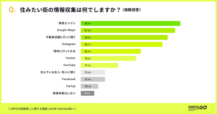 Z世代、約67%がSNSから部屋探し経験あり!Googleマップ・インスタで周辺情報検索も
