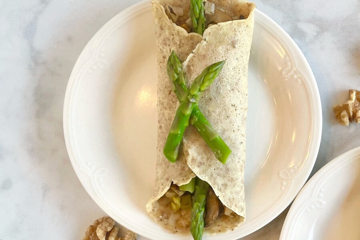 今回ご紹介するのは、くるみで満足感をプラスした「くるみ、アスパラ、ネギのクレープ」をはじめ、くるみの香ばしさと食感がクセになる「くるみ、チキン、トマトのズッキーニヌードル パルメザン風味」、くるみ×カッテージチーズで高たんぱく・低糖質な「くるみとハーブチーズのスタッフドミニパプリカ」、くるみのコクがポイント「カリフォルニアくるみと野菜の低糖質シェパードパイ」の4レシピです。くるみをいつもの食材に組み合わせることで、よりヘルシーにおいしく糖質コントロールができます。