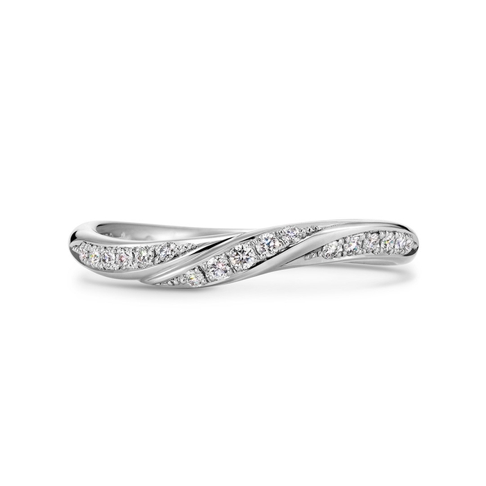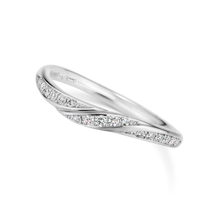 ゆるやかなウェーブラインで、左手薬指のつけ根に心地よく馴染むデザインです。3つの面があり、ダイヤモンドの有無をアレンジしたり、一部に好みのテクスチャをほどこしたりなど、自分らしいアレンジを楽しめます。