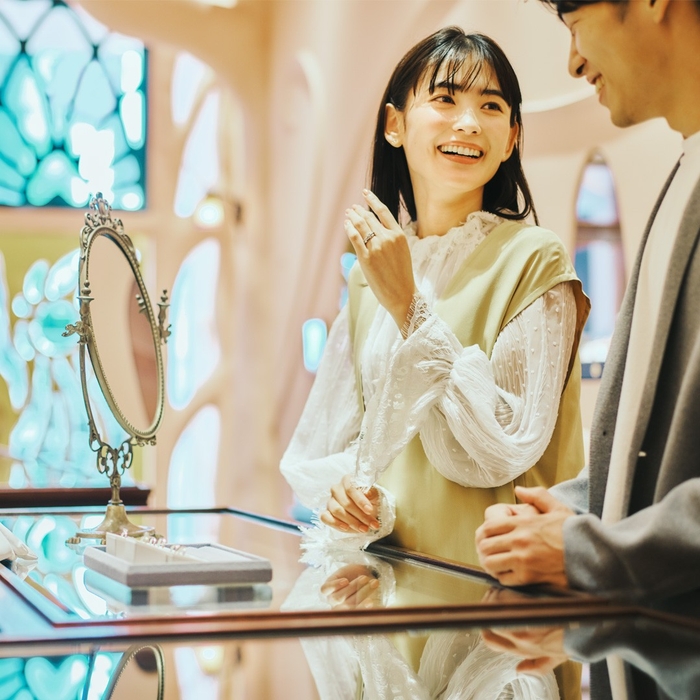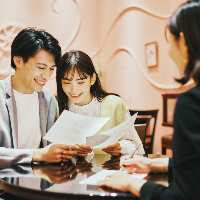 オーダーブランドとして50万組以上のカップルに指輪をご提案してきたケイウノ。創業以来40年以上かけて培われたメソッドで、自分たちだけでは気づけない「好き」「似合う」を見つけます。ふたりのためにパーソナライズされたデザインが生まれる感動体験は、ケイウノでしか味わえないと好評です。