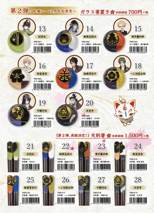 蜻蛉切様。お箸と重ねておいたら、世界が完成しそうです。こちらは700円(税別)。あれ、もしかして、プチプラ?とうらぶファンの間でのプレゼント交換に?合わせて予約が開始されます。