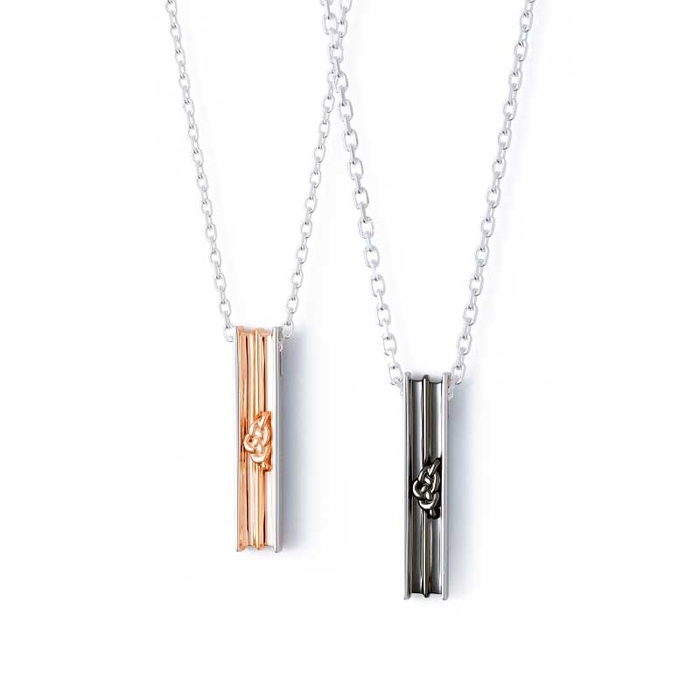 金沢に古くから伝わる伝統工芸品「ゆびぬき」をモチーフにしたペアネックレス。