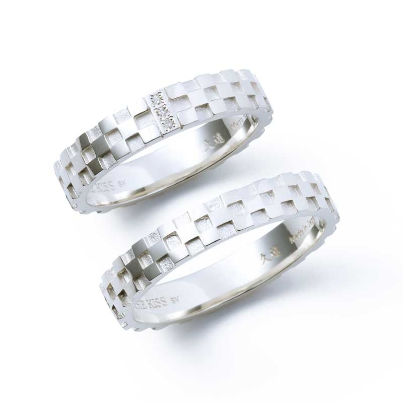 ふたりの出会いと永遠を意味する「Crossing」シリーズに「市松模様」をデザインしたペアリング。