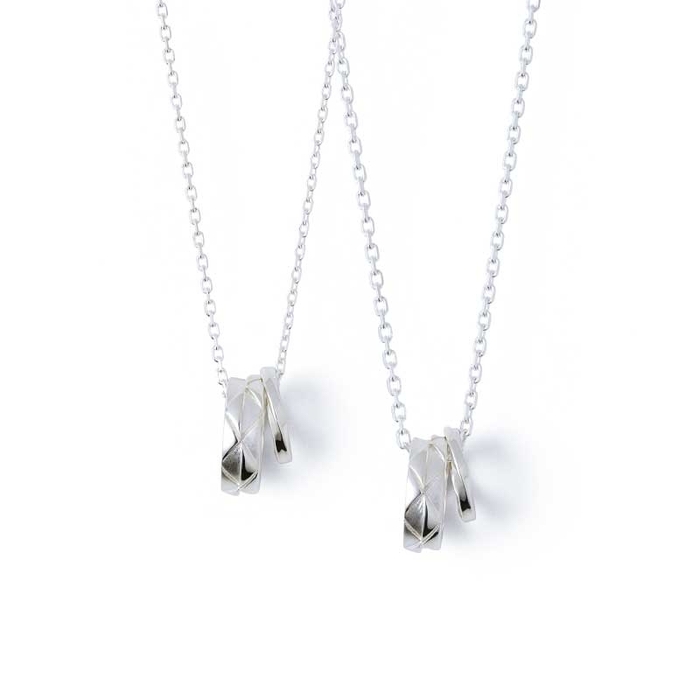 幸福の象徴である「千鳥格子」がデザインされたペアネックレス。