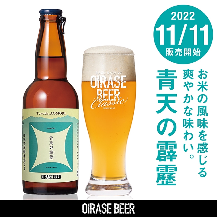 この度、2022年11月11日から青森県のブランド米「青天の霹靂」を使用したオリジナルクラフトビールの販売を開始しますのでお知らせします。ビール製造過程で「青天の霹靂」を副原料として使用し、お米の風味を感じる爽やかな味わいに仕上がっています。青天の霹靂ビールを通して、青森県のPRに貢献していきたいと考えています。青森県のクラフトビールとして、年末のギフト・お歳暮におすすめです。