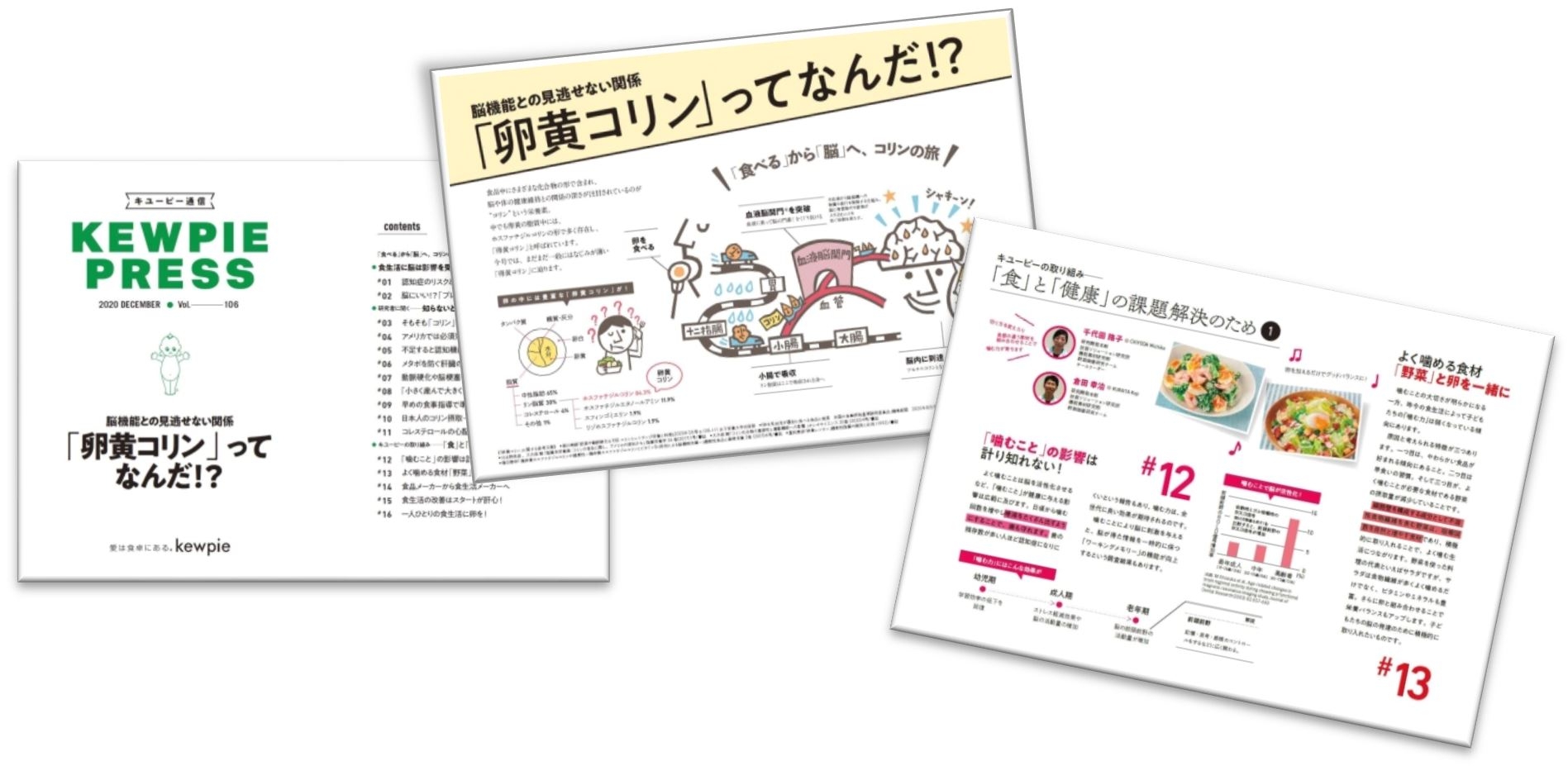 キユーピー株式会社(本社:東京都渋谷区、代表取締役 社長執行役員:長南 収、以下キユーピー)は、1993年から発行を続けている、食にまつわる情報誌「キユーピー通信」をリニューアルして、Vol.106「脳機能との見逃せない関係『卵黄コリン』ってなんだ!?」を発行します。一般にはまだなじみの薄い栄養素「コリン」、中でも卵に多く含まれる「卵黄コリン」に迫ります。これまで冊子の形態で、主にメディア関係者向けに配布してきましたが、今号から自社サイトでのWEB閲覧に特化し、パソコン画面で見やすい横長のデザイン・文字量にリニューアルしました。