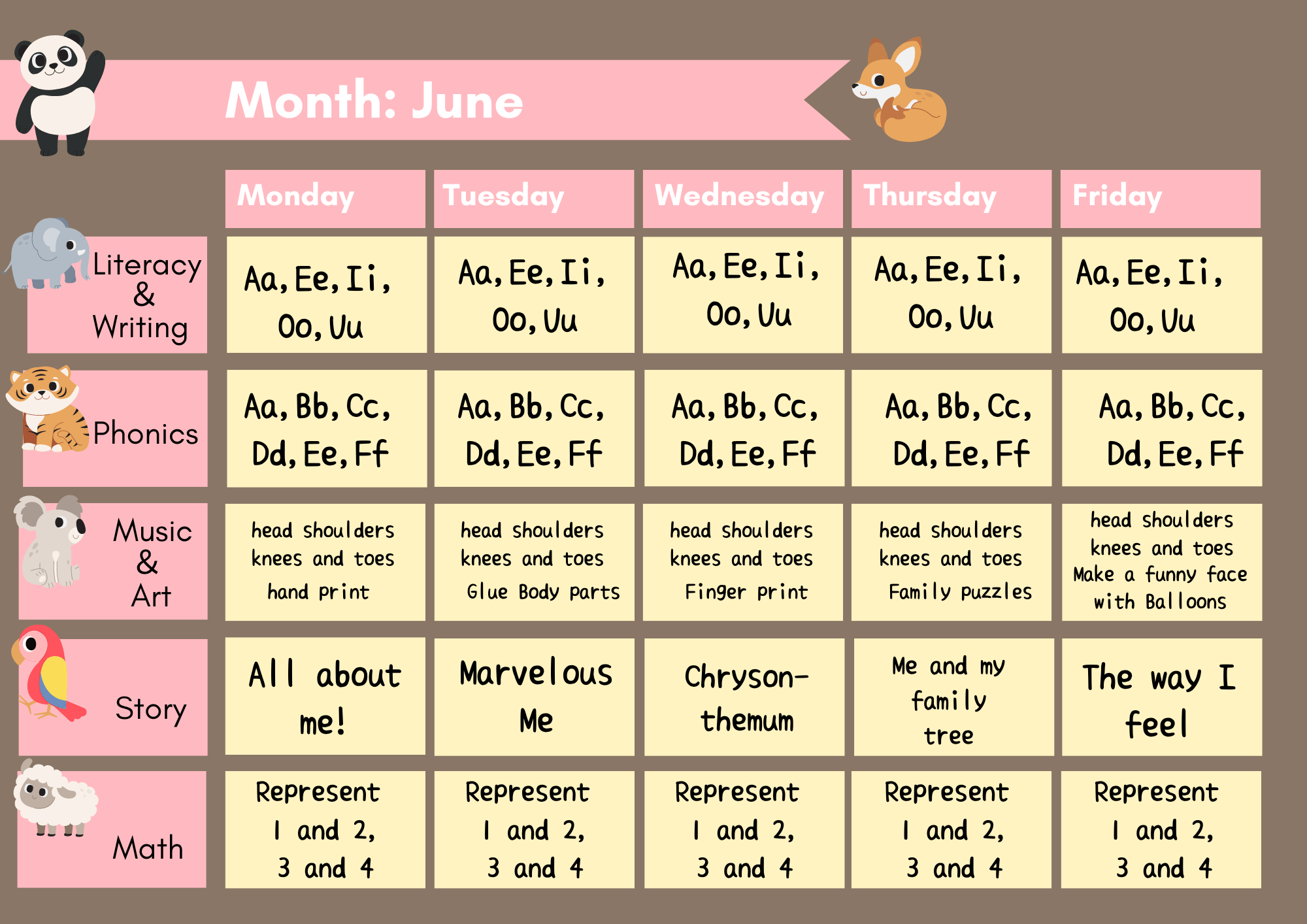 Literacy,Writing,Music,Art,Story,Mathなど7つのトピックを学習していきます。親子で歌ったり、書いたり、聞いたりできる楽しめるトピックが含まれています。