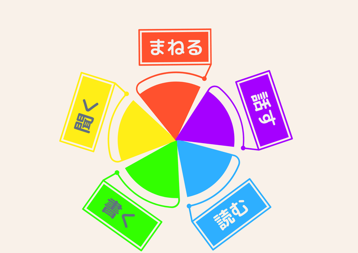 ほとんどの場合、母語を身につける流れは、聞く→まねる→話す→読む→書く、の順番で自然に身につけてきました。